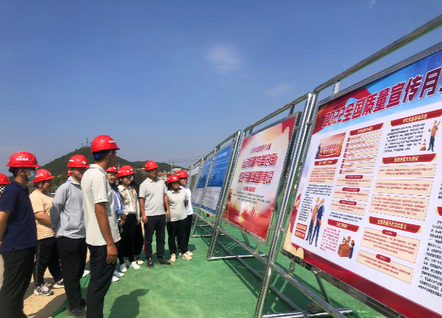 分公司牢固樹立質(zhì)量第一意識,不斷提高質(zhì)量效益?!百|(zhì)量月”動員會上,分公司質(zhì)量管理領(lǐng)頭人進(jìn)行倡議發(fā)言,旨在“榜樣”的引領(lǐng)帶動下,廣泛推行全員質(zhì)量管理,不斷提升質(zhì)量水平。活動開展過程中,施工現(xiàn)場懸掛“質(zhì)量月”宣傳條幅42條、質(zhì)量展板8塊、宣傳海報8張,營造出“人人關(guān)心質(zhì)量、重視質(zhì)量、追求質(zhì)量、守護(hù)質(zhì)量”的共治共享氛圍。
