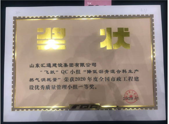 近日,由山東匯通建設集團有限公司組建的“飛躍”和“精進”QC小組參加了中國市政協(xié)會舉辦的2020年度全國市政工程建設優(yōu)秀質量管理評比交流會,并在100多個參會小組中脫穎而出,雙雙榮獲全國市政工程建設優(yōu)秀質量管理小組一等獎。