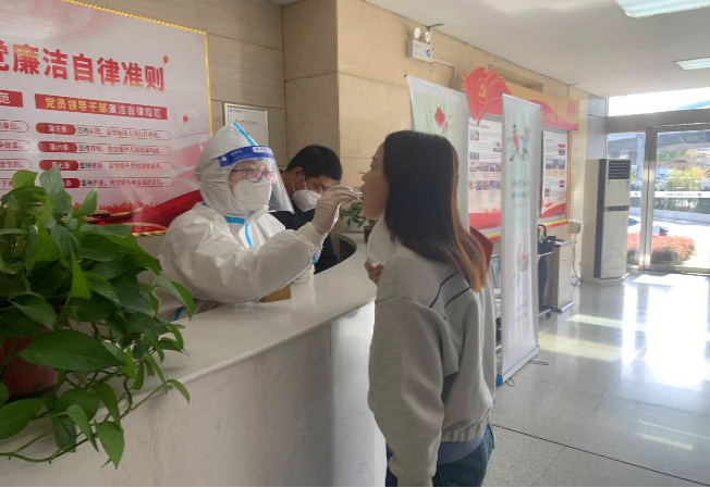 匯通公司嚴(yán)格按照集團(tuán)安排部署,主動承擔(dān)社會責(zé)任,兩批志愿服務(wù)隊隊員先后下沉到社區(qū),協(xié)助社區(qū)進(jìn)行管控、信息采集、核酸檢測等工作。我們的“匯通鐵軍”在疫情防控關(guān)鍵時期化身“暖心大白”和“紅衣衛(wèi)士”,因愛而行、沖鋒在前;同樣有一群人,在后方以實際行動助力抗疫,保障一方平安。自11月30日起,隨著解除封控回到基地上班的職工陸續(xù)增加,有職工提到自己居住地核酸檢測時間結(jié)束的早,很怕耽誤了檢測,無法按時上班。分公司后勤保障組組長馬婕立刻多方打聽,詳細(xì)詢問,反復(fù)溝通,終于得到華山街道辦事處的回復(fù),可以上門對核酸檢測進(jìn)行培訓(xùn)和指導(dǎo)。很快,由小組成員李小嬌、張文鳳和物業(yè)公司工作人員組成的臨時核酸檢測點(diǎn)籌備完成?!?