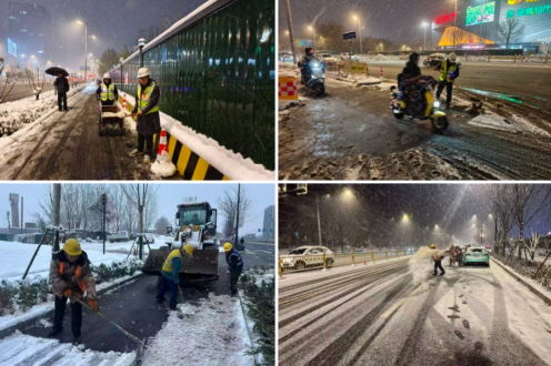 12月12日,泉城濟南迎來降雪天氣,持續(xù)的降雪給城市交通出行和市民生產(chǎn)生活帶來諸多不便,也給項目現(xiàn)場施工安全帶來嚴峻挑戰(zhàn)。匯通集團第一時間啟動冰雪天氣應(yīng)急預(yù)案,統(tǒng)籌調(diào)度各在濟項目迅速響應(yīng)。各項目部聞令而動,立即組建以黨員先鋒隊、青年突擊隊為核心的掃雪除冰攻堅隊,項目管理人員帶頭沖鋒,全體參建人員迅速投入戰(zhàn)斗,一場以“保暢通、保安全、保民生”為目標的掃雪除冰攻堅戰(zhàn)全面打響! 在各項目施工現(xiàn)場出入口、主干道、材料堆放區(qū)及周邊居民通行要道等關(guān)鍵區(qū)域,大家手持鐵鍬、掃帚,配合裝載機等設(shè)備分工協(xié)作,鏟積雪、清路面、撒融雪劑、除冰層。全體人員不畏嚴寒、干勁十足,經(jīng)數(shù)小時連續(xù)奮戰(zhàn),各項目轄區(qū)及周邊道路積雪