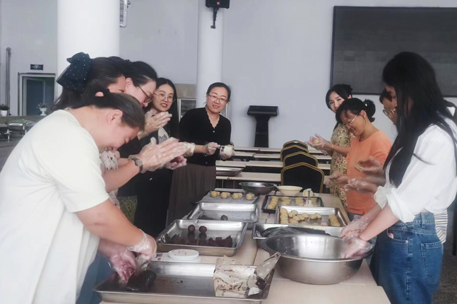 為弘揚中華優(yōu)秀傳統(tǒng)文化,進一步增進職工交流,近日,匯通集團組織開展“我們的節(jié)日·中秋”主題活動,10余名職工參自制月餅活動,喜迎中秋佳節(jié)。吃月餅是中國傳統(tǒng)節(jié)日中秋節(jié)的重要習(xí)俗之一。月餅不僅是一種美食,更有著深刻的文化意義和寓意,在準(zhǔn)備制作月餅的過程中,職工不僅僅是在體驗一種傳統(tǒng)習(xí)俗,更是在傳遞一份深厚的文化情感。自制月餅并不復(fù)雜,需要的材料和步驟也相對簡單。首先是要準(zhǔn)備好月餅皮和月餅餡料。月餅皮可以用面粉、白糖、植物油等原材料制成,而月餅餡料則可以根據(jù)個人口味和喜好來選擇,此次活動準(zhǔn)備了棗泥和豆沙兩種餡料。接下來是制作月餅生坯。取一個餅皮,稍稍拍扁轉(zhuǎn)圓,放上一個稱重符合標(biāo)準(zhǔn)的餡料,然后右手將餡