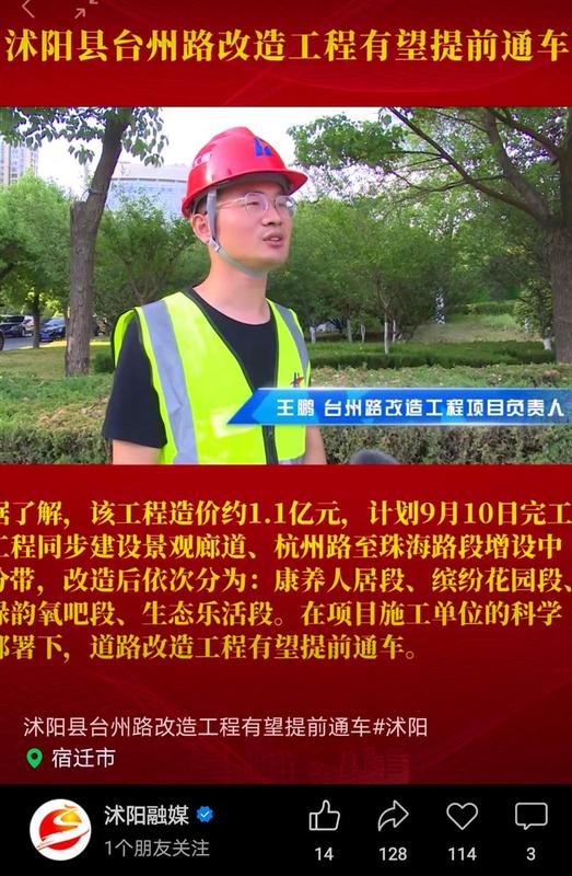 6月8日,沭陽縣電視臺及沭陽融媒公眾號分別以《沭陽縣臺州路改造工程有望提前通車》為題,對匯通公司承建的沭陽縣臺州路改造工程科學(xué)組織、精準(zhǔn)實施,加快推進(jìn)項目建設(shè)進(jìn)行專訪報道。沭陽縣臺州路改造工程(杭州路至珠海路)項目位于宿遷市沭陽縣,全長3442米。自5月10日接到沭陽縣住建局指示進(jìn)場以來,在各方領(lǐng)導(dǎo)的幫助和支持下,項目部通過精心策劃,高效實施,在保證施工安全和質(zhì)量的前提下,將原有合同工期120天壓縮至72天,獲得了業(yè)主的一致好評,得到了市民肯定。工程效果圖筑夢路上,我們以精細(xì)化、快速化、人性化施工管理理念,奮勇當(dāng)先,深耕細(xì)作,助力工程建設(shè)再創(chuàng)佳績,向沭陽縣人民交上一份滿意的答卷!
