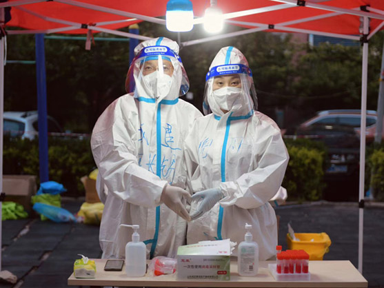 在抗擊疫情的戰(zhàn)線上,有這樣一對美麗又溫暖的身影,他們彼此牽掛又相互鼓勵,他們心系家人又?jǐn)y手同行,他們是戰(zhàn)疫中的最美夫妻檔,舍小家顧大家,用實際行動書寫著別樣的浪漫。?疫線伉儷雙倍守護(hù)? 陳長錫是匯通公司的一名項目總工,在4月27日接到防疫志愿服務(wù)任務(wù)后,他積極響應(yīng)義無反顧投身到防疫工作中去。 他所在的南苑社區(qū)共設(shè)11個采樣點,分布范圍廣、居民多、人員分散,面對全新的工作環(huán)境和任務(wù),他及時調(diào)整心態(tài)、轉(zhuǎn)變角色,與組長劉世鵬一起詳細(xì)了解掌握社區(qū)情況,熟悉工作流程。 在雅秀園門崗服務(wù)站點,在做好個人防護(hù)措施后,迅速投入到居民核酸檢測、社區(qū)消毒消殺、運送防疫檢測物資等工作中。此站點居民