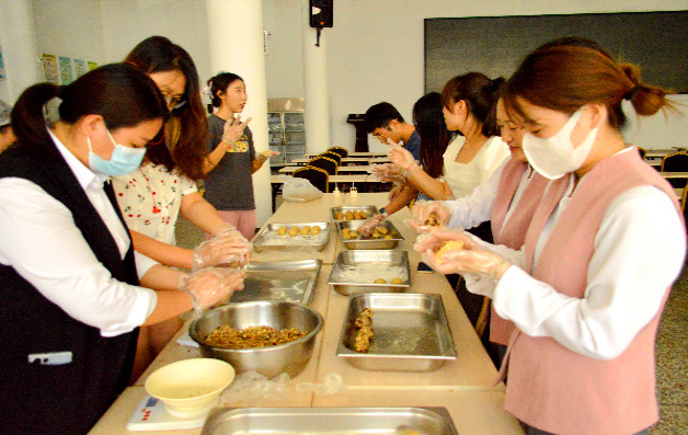 活動得到青年職工的積極響應(yīng),在面點(diǎn)老師的悉心指導(dǎo)下,青年職工現(xiàn)場體驗(yàn)了月餅的制作過程。在拿到原料后,大家躍躍欲試,紛紛按照流程,滾圓、壓模、脫模,“大展身手”忙得不亦樂乎,在一雙雙巧手的揉捏下,一個個圓圓的月餅團(tuán)出現(xiàn)了,一會兒功夫就做了滿滿幾大盤月餅?,F(xiàn)場熱火朝天,大家一張張綻放的笑臉,手里一塊塊的月餅,處處流露著收獲的喜悅。